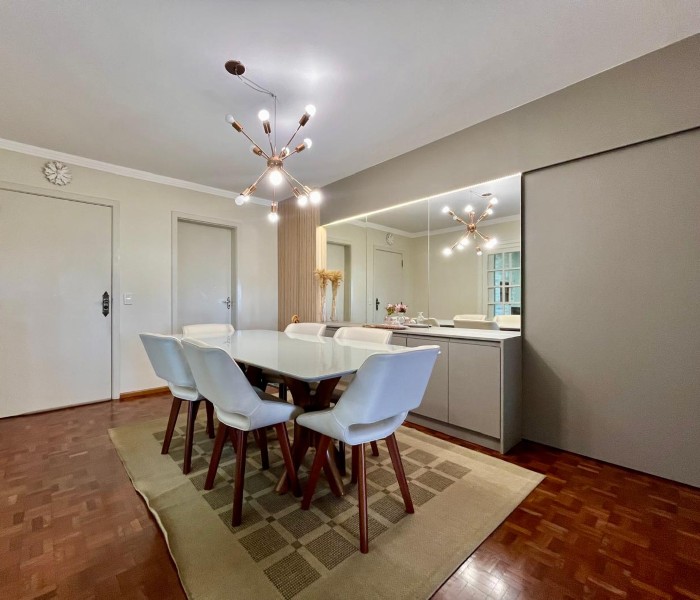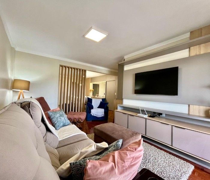 Este apartamento além de muito espaço com 141 metros privativos, em andar alto, com vista, te oferece ambientes acolhedores, ficam no imóvel todos os móveis fixos.