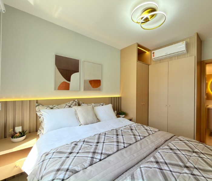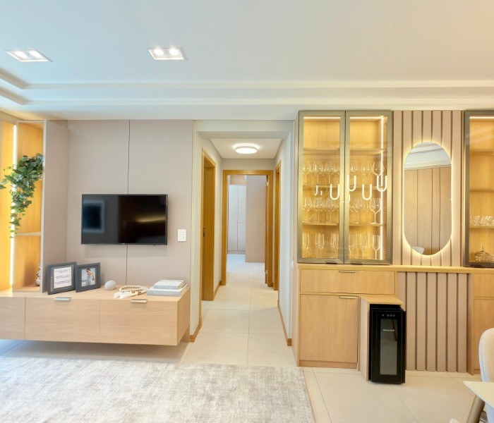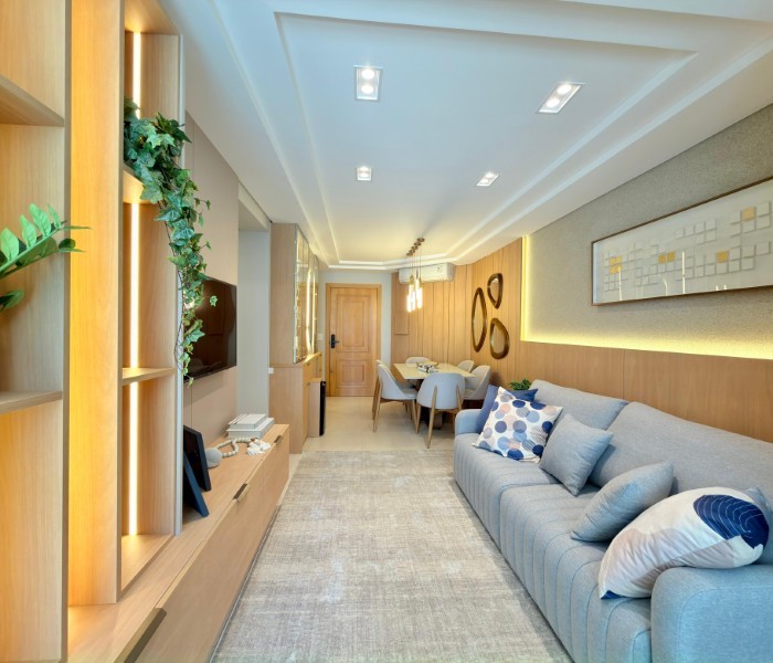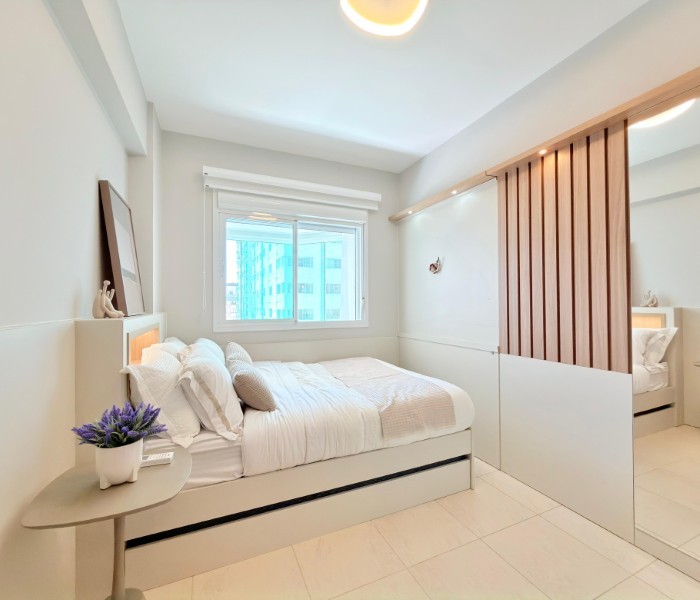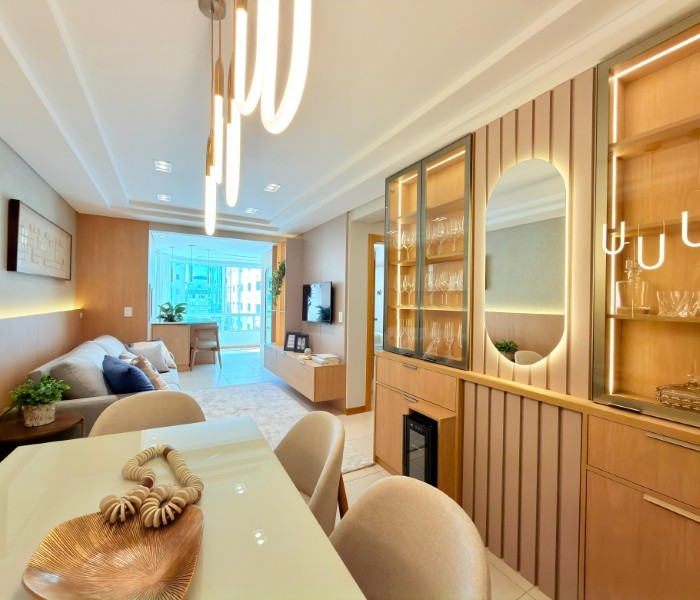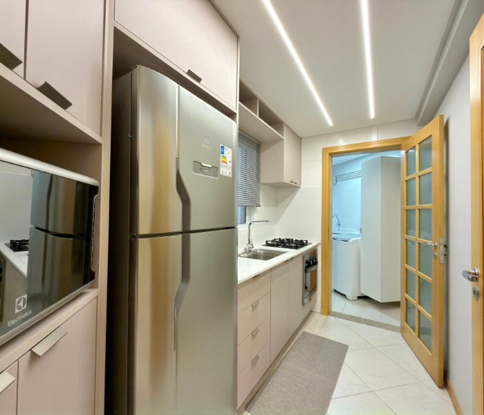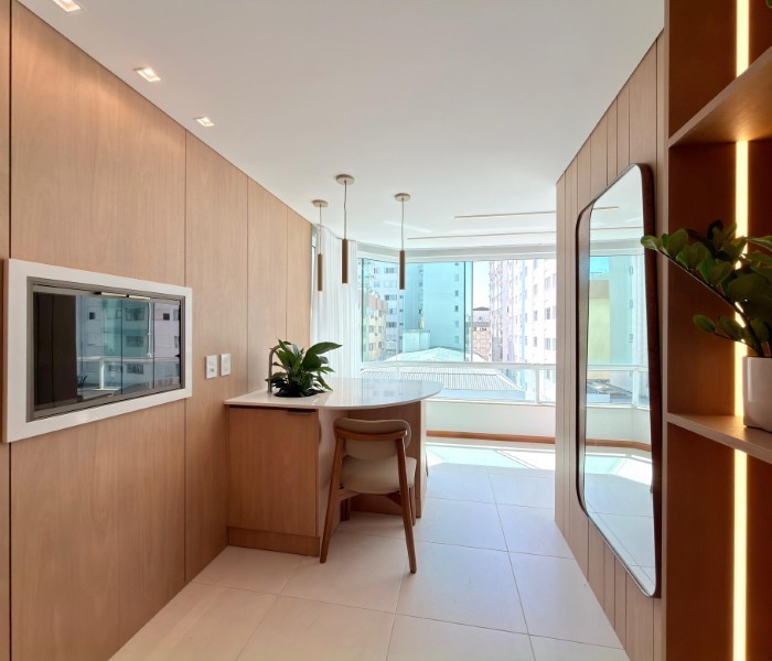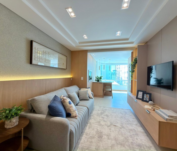 Apartamento Completamente Mobiliado e decorado Na Praia, com uma sacada convidativa e o Sol da manhã. Edifício conta com estrutura de Salão de Festas, Piscina, sala de jogos e zelador permanente.